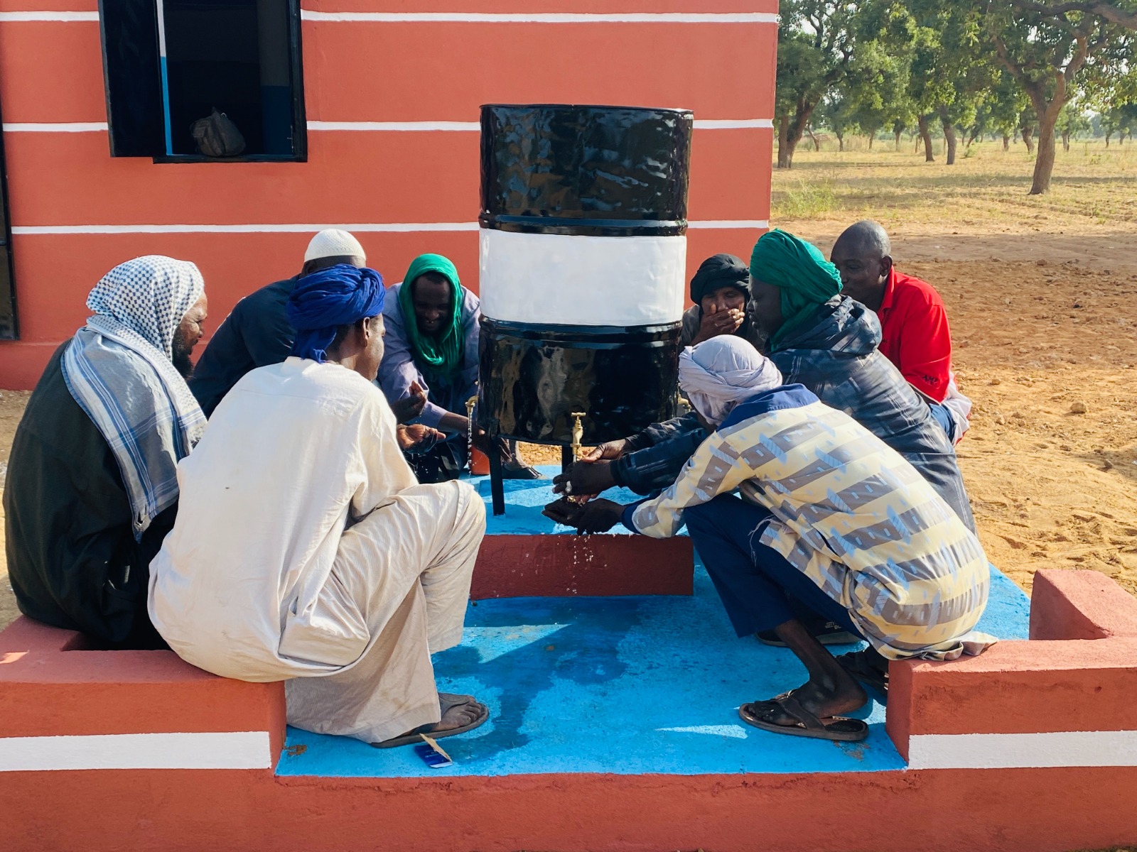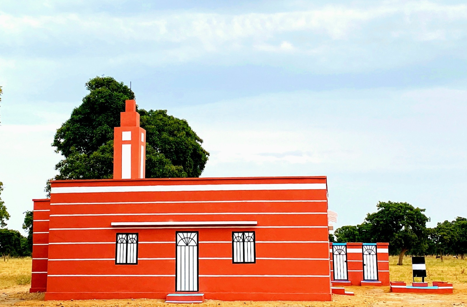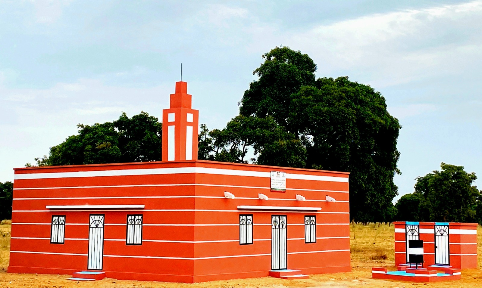 نموذج بناء مسجد 100 متر مربع في مالي بالطوب والاسمنت والحديد والخرسانة المسلحة مسقف بالزنك والخشب العازل للحرارة، مع التجهيز ودورات مياه تسع لعدد 160 مصل بتكلفة 4500 د.ك
