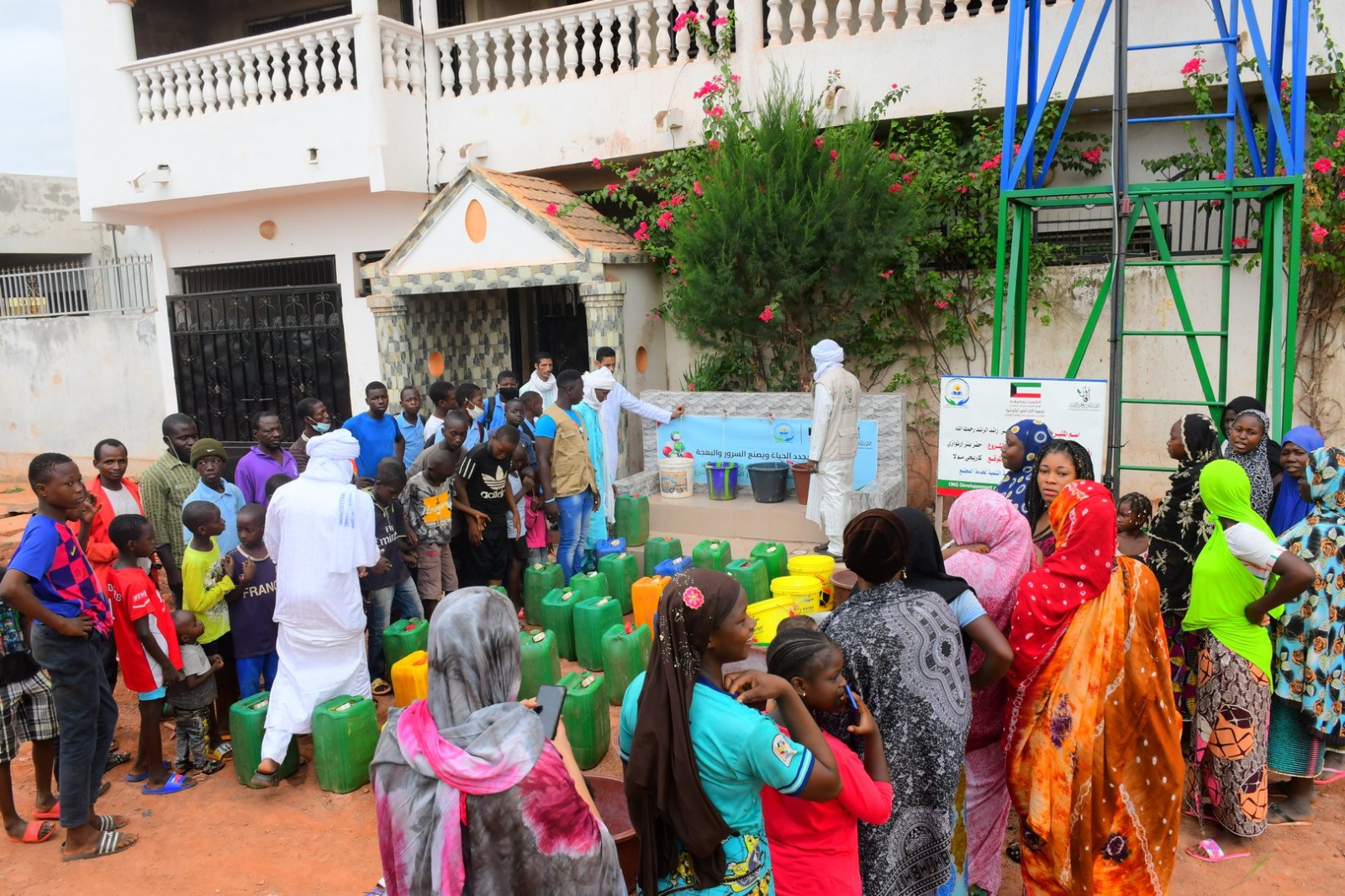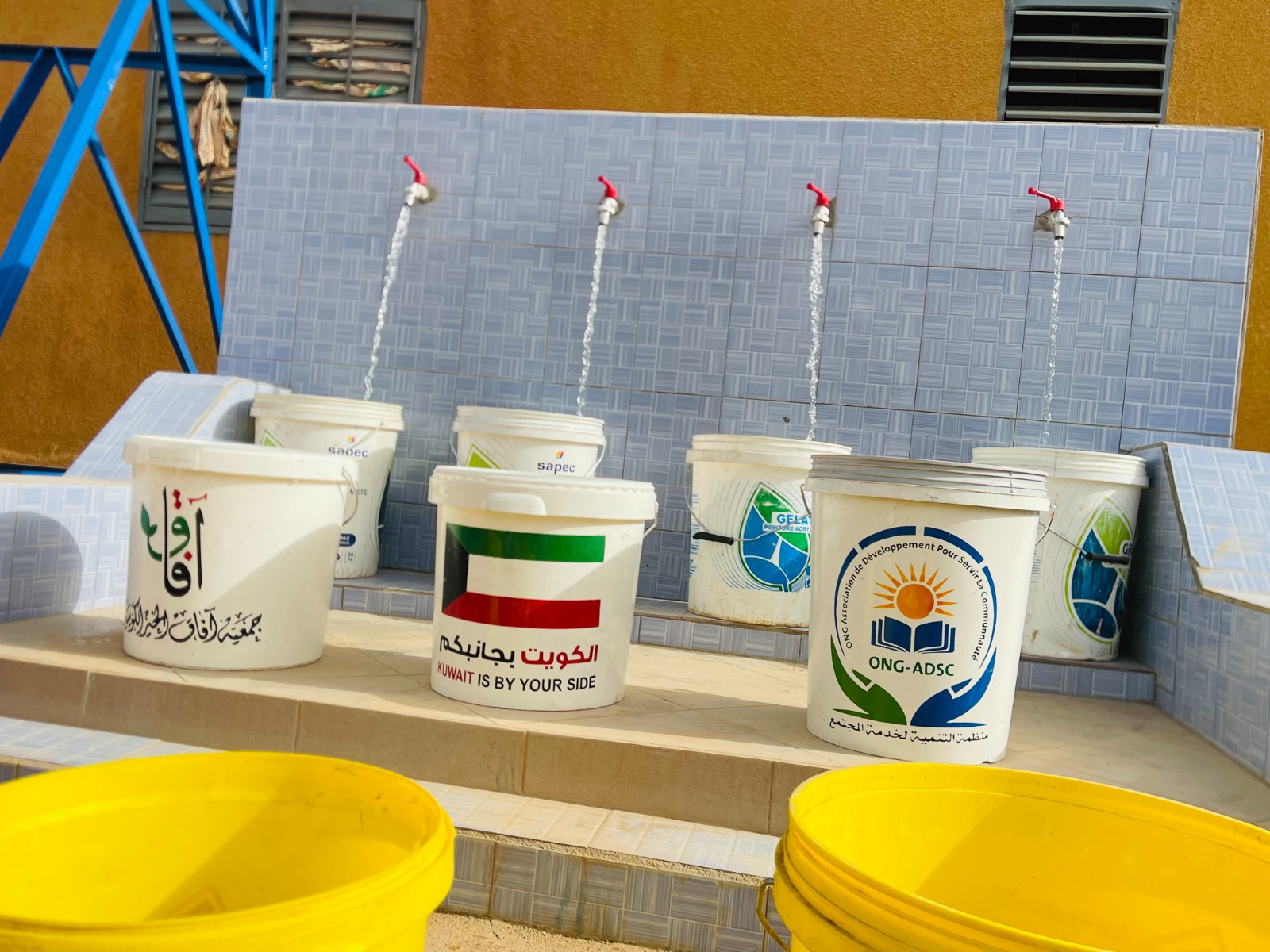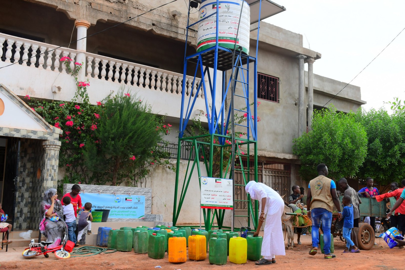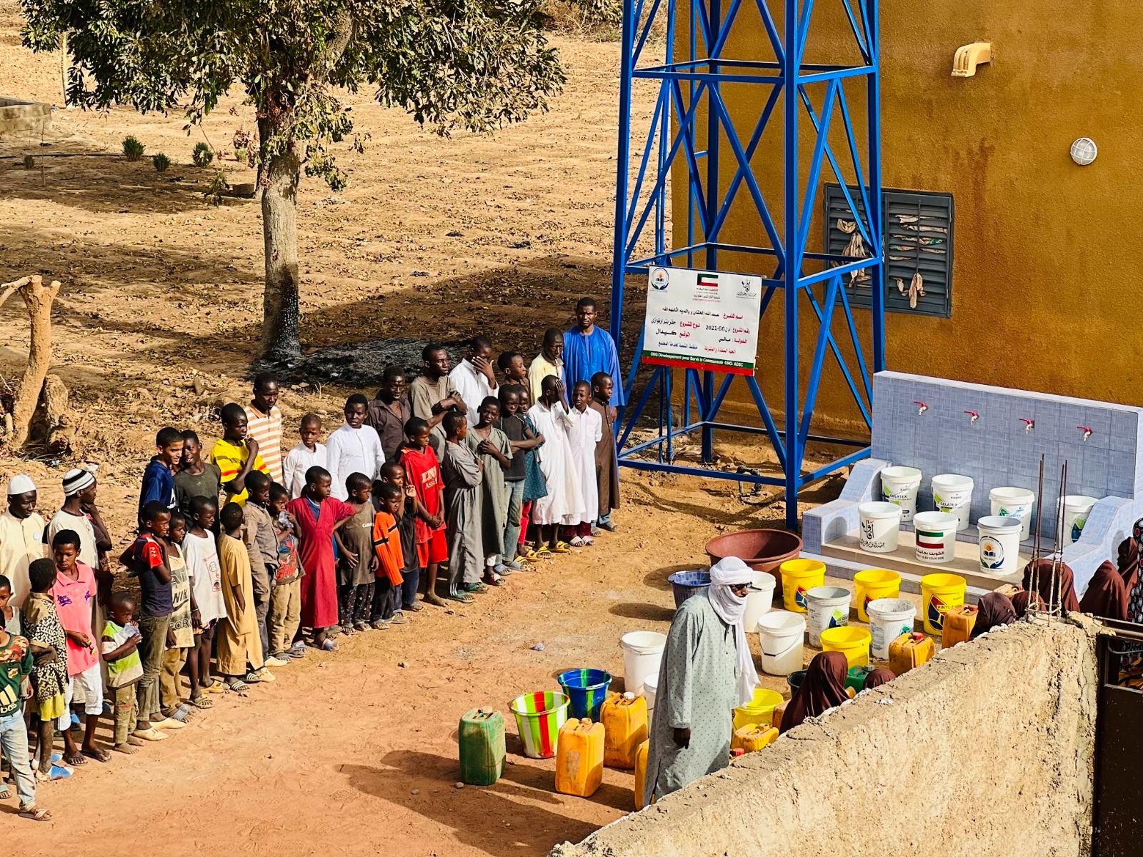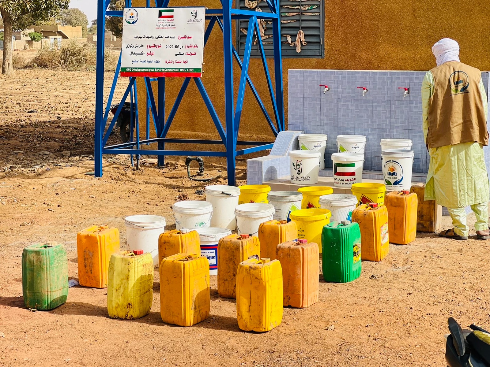 بئر ارتوازي يتم بواسطة حفار آلي مع ملحقاته خزان ماء بلاستيكي يسع 5000 لتر + أنابيب + مضخة كهربائية طاقات شمسية بعمق يتراوح من 60 إلى 80م3 يكفي لعدد 3 قرى بتكلفة 6000 د.ك