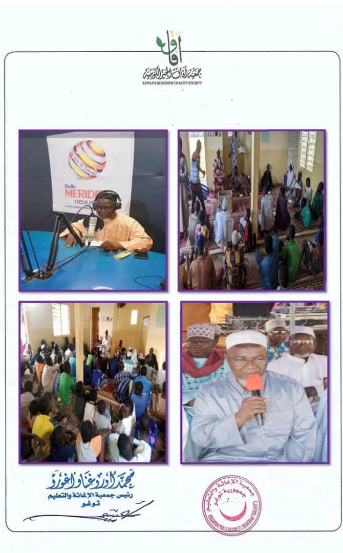 الداعية / تشاري تشاكورا من دعاة جمعية افاق الخير الكويتية في جمهورية توغو يلقي محاضرة دعوية عبر الاذاعة في توغو ، كذلك إلقاء محاضرات دعوية في مساجد الحي