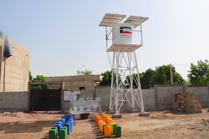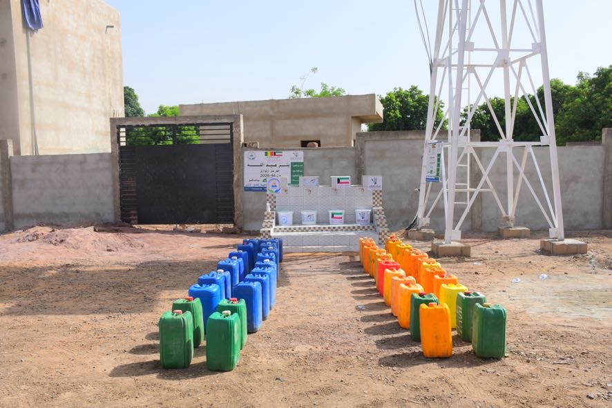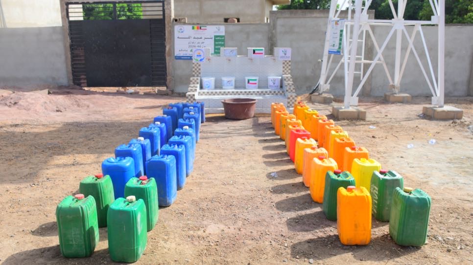 حفر بئر ارتوازي يتم بواسطة حفار آلي مع ملحقاته + خزان ماء بلاستيكي يسع 5000 لتر + أنابيب + مضخة كهربائية + طاقات شمسية بعمق يتراوح من 60 إلى 80م3 يكفي لعدد 3 قرى بتكلفة 6000 د.ك
