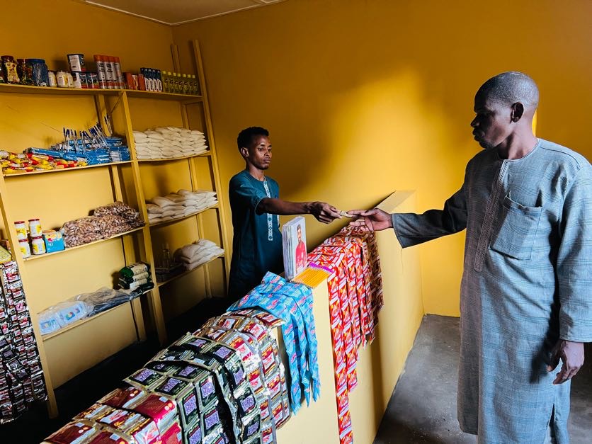 نموذج تنفيذ مشروع دكان وقفي وهو عبارة عن محل تجاري صغير بمساحة 20م2 مع التجهيز بالرفوف وأرز ودخن
